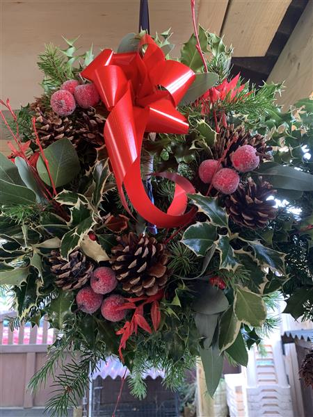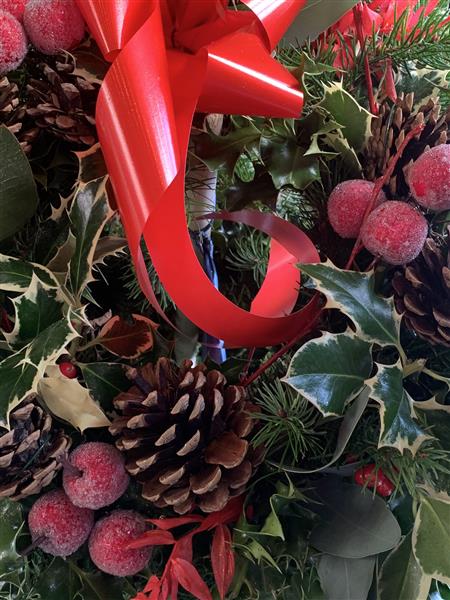 Decorate your door or loved one resting place this year with a beautiful holly wreath fully decorated.