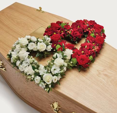 Heart-shaped floral tributes make a poignant statement that symbolises love and compassion.