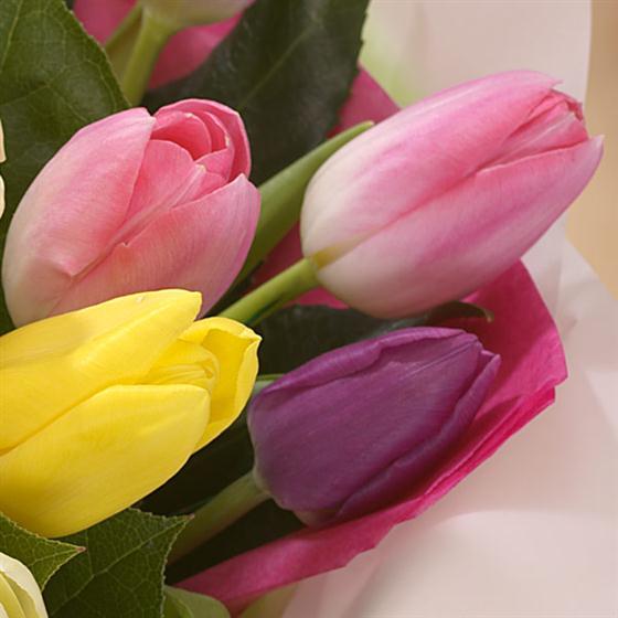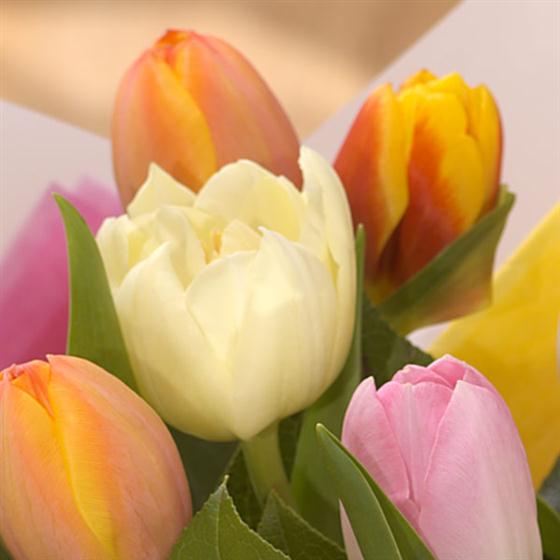 A stunning hand-tied of mixed Tulips. Simple and elegant, this arrangement will brighten somebody's day.