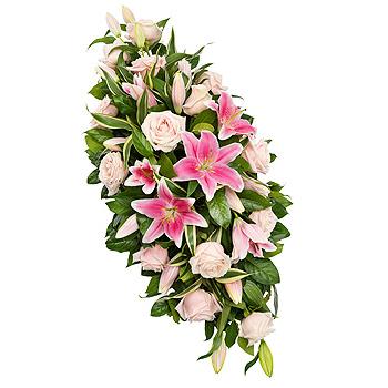 A beautiful pink Rose and Lily double ended spray with foliage.